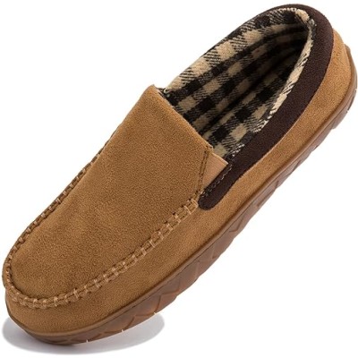 Men's Moccasin Slippers Warm Memory Foam Suede Soft Plush Lined Slip on