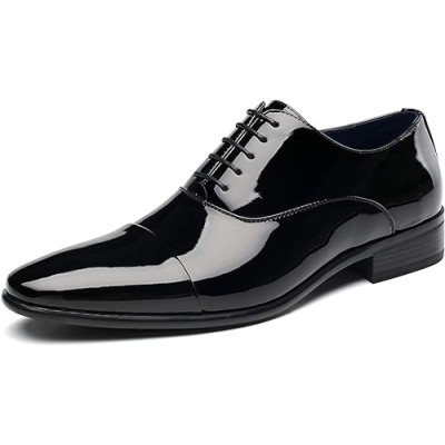 Mens Faux Patent Leather Classic Lace-up Formal Oxford