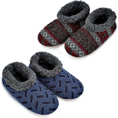 2-Pair Men's Slipper Socks Fluffy Sherpa Lined, Winter Cable Knit Warm