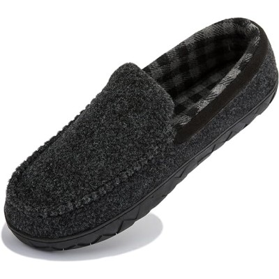 Men's Moccasin Slippers Warm Memory Foam Felted Wool Plush